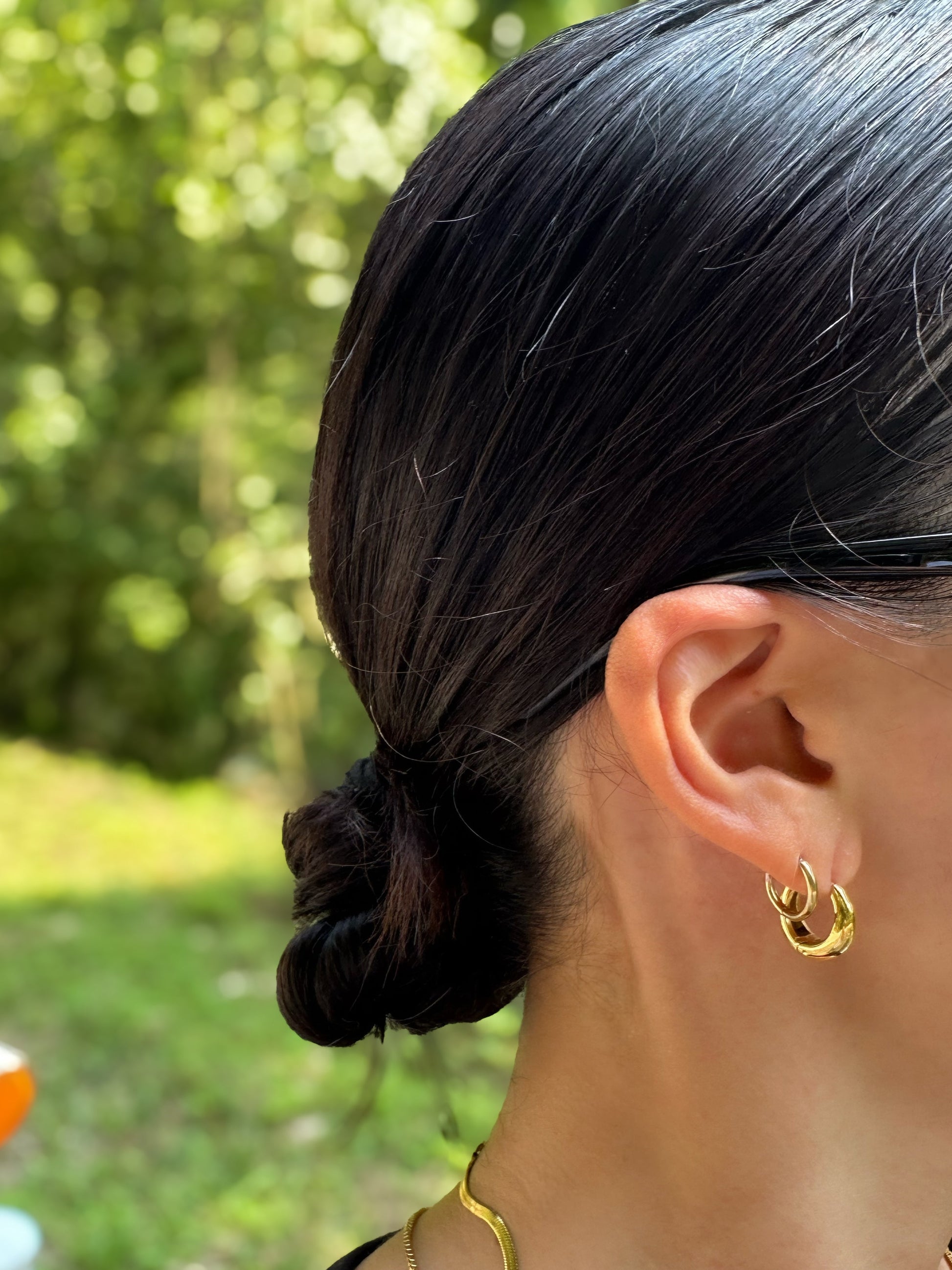 控えめなサイズ感ながら、耳元にさりげない存在感をプラス。