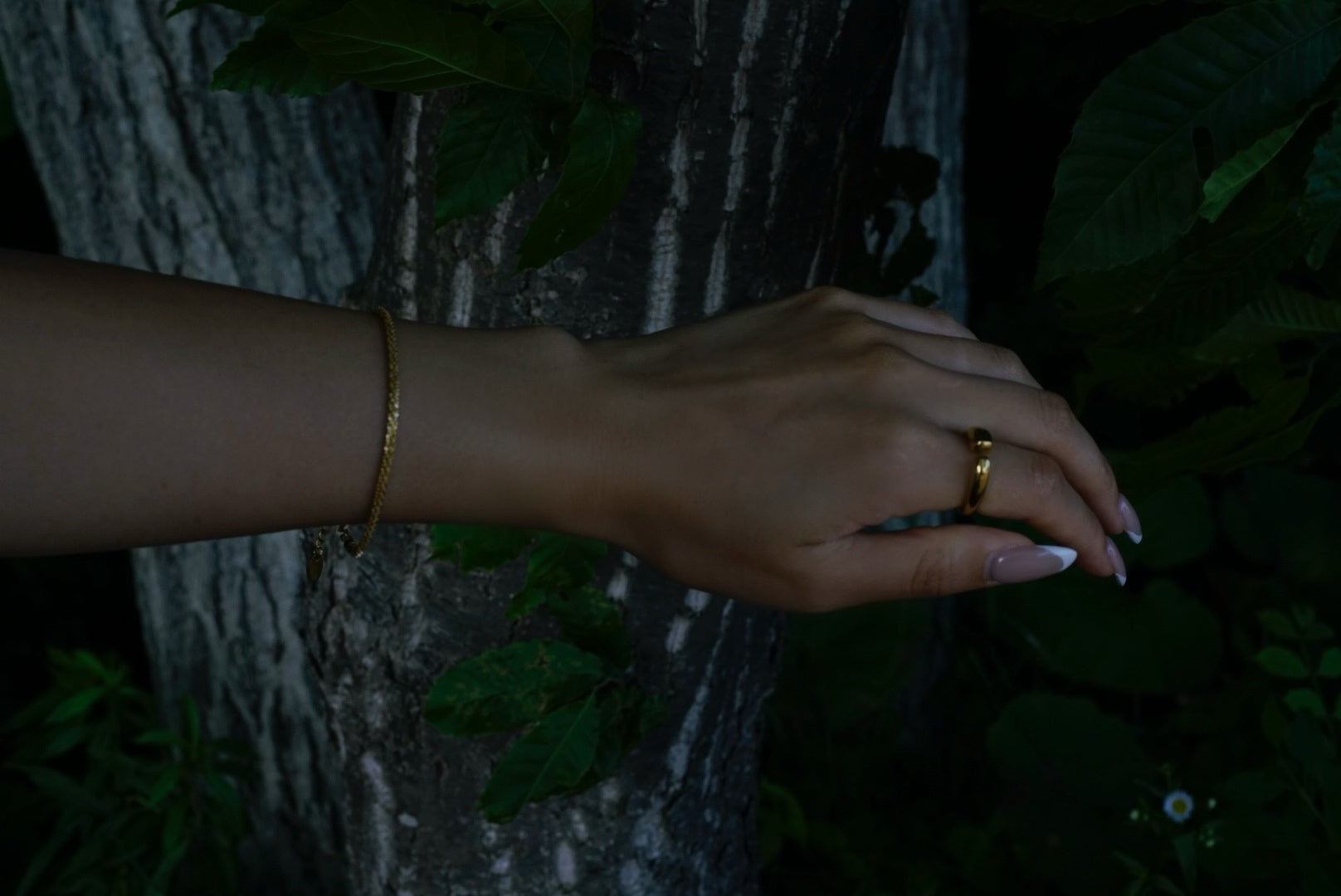 手元を繊細に彩る、細く華奢なデザインのブレスレット。