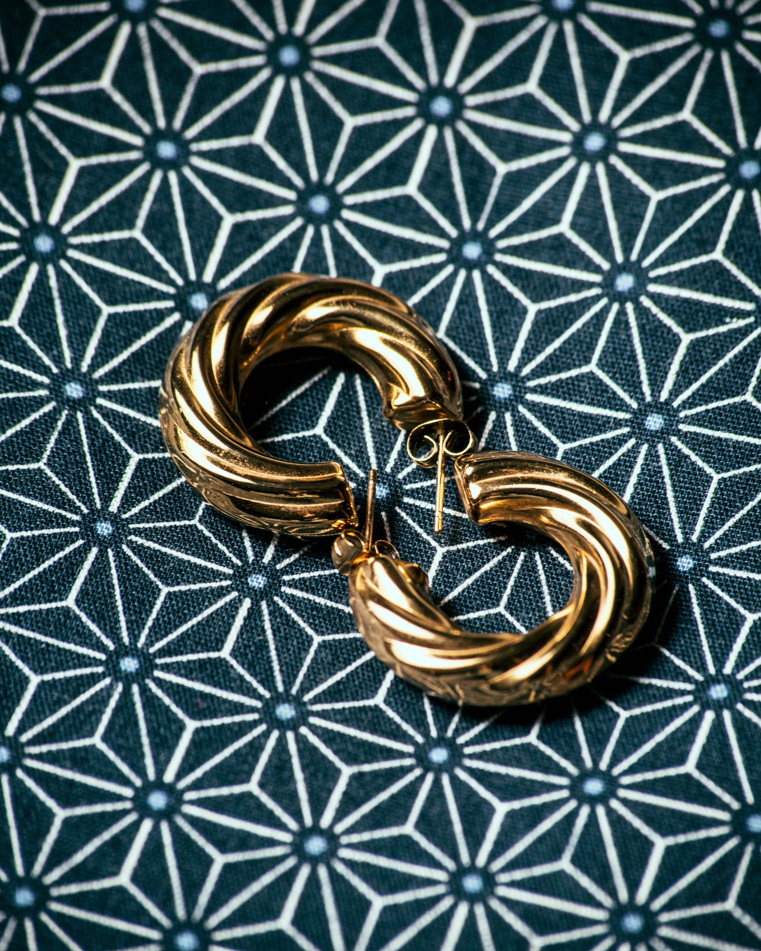 ゴールドの輝きが耳元に華やかなアクセントを添えます。